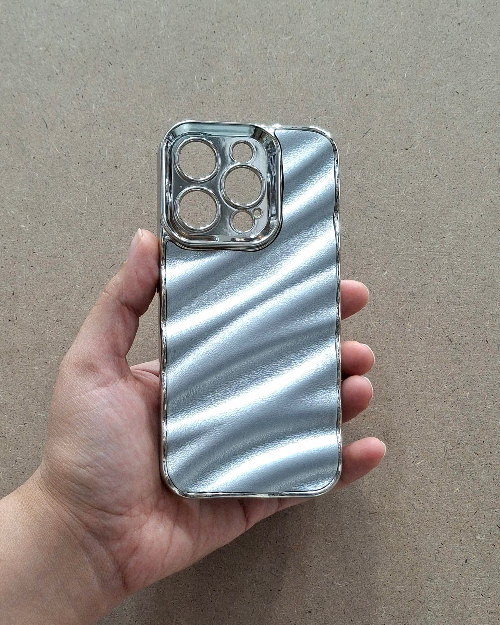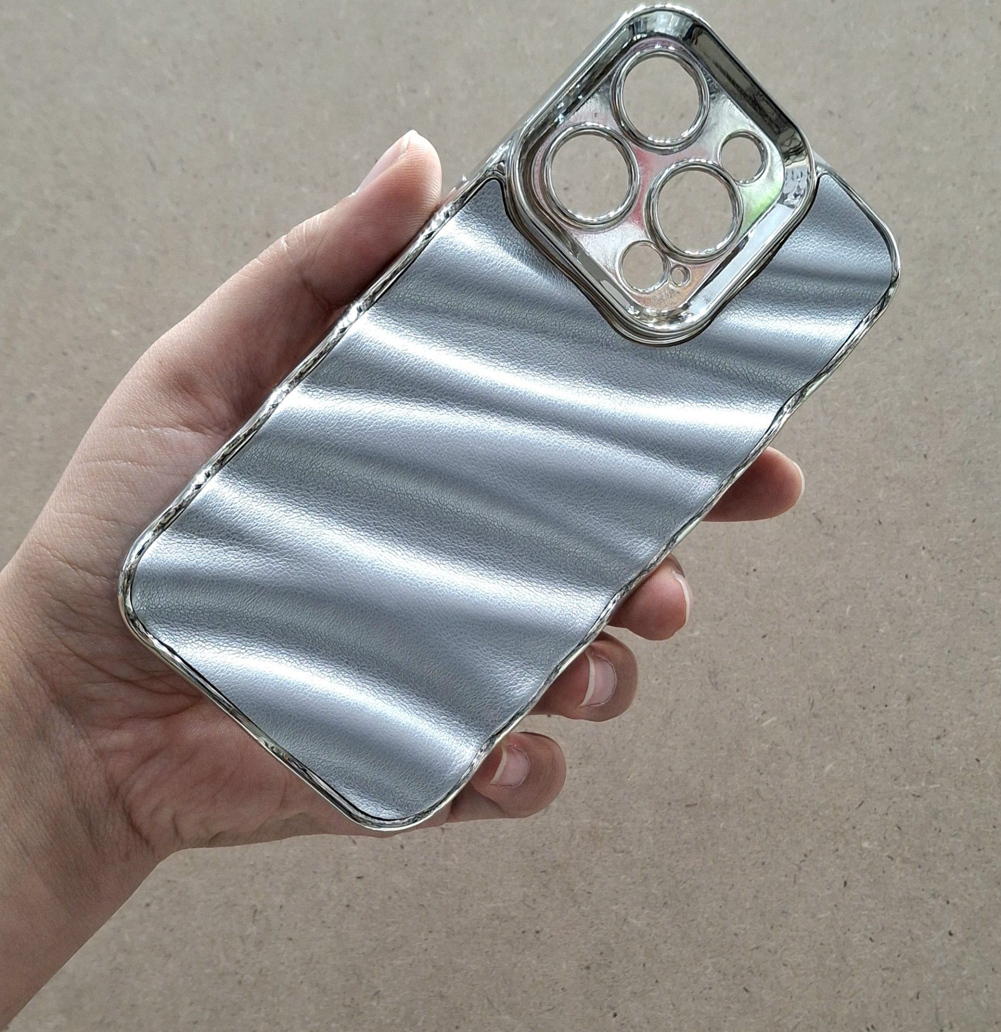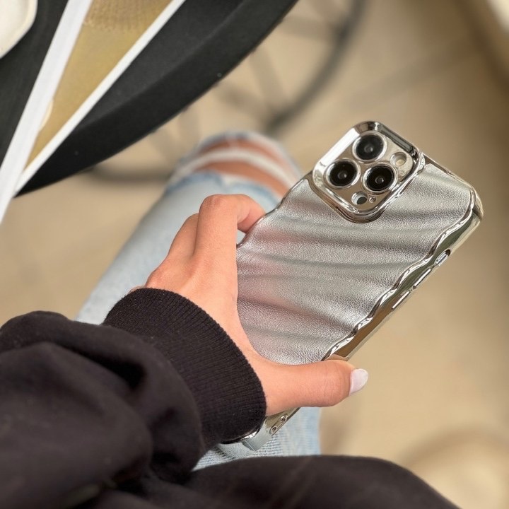 قاب چرمی موج دار نقره ای