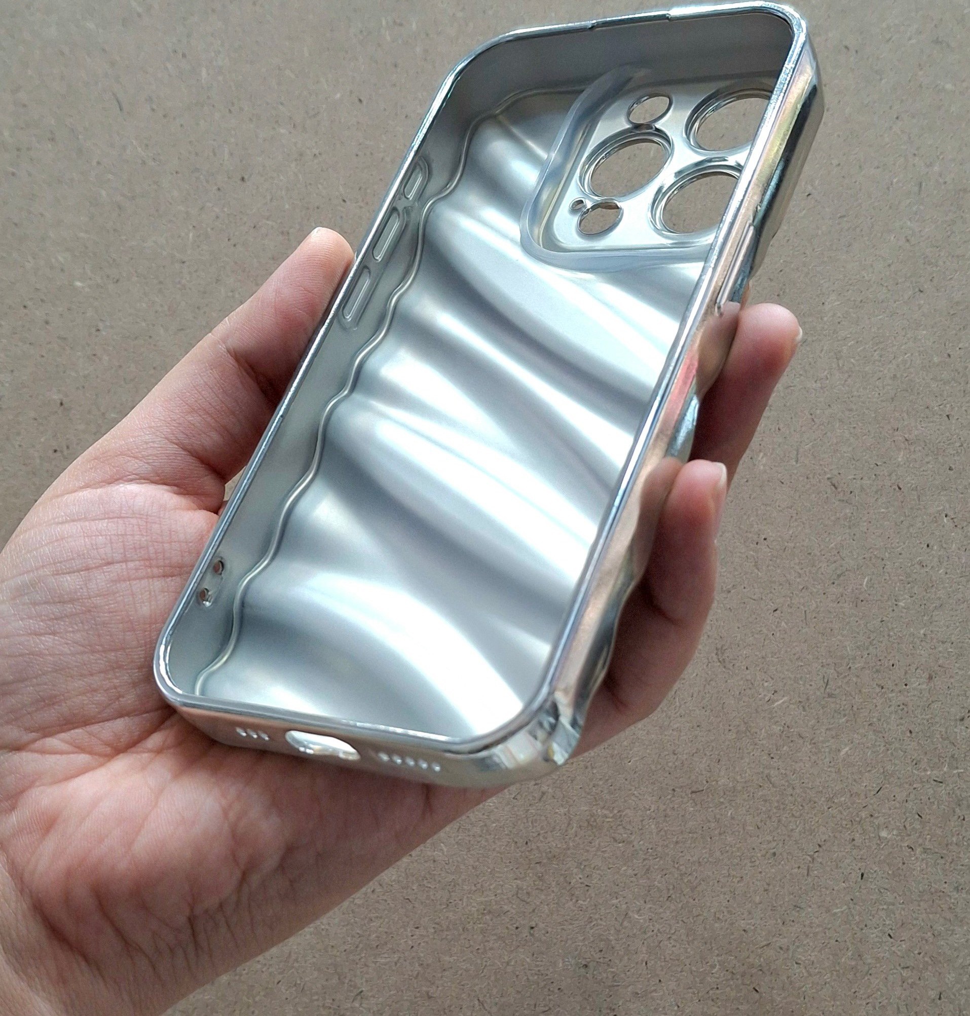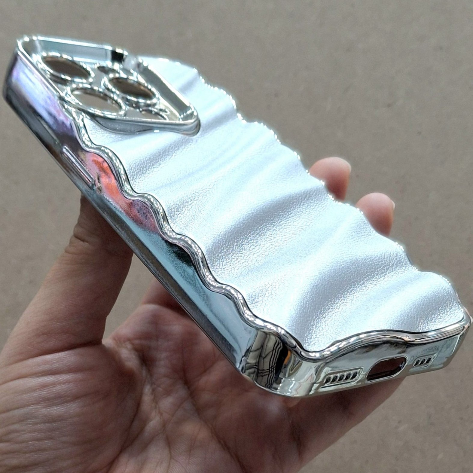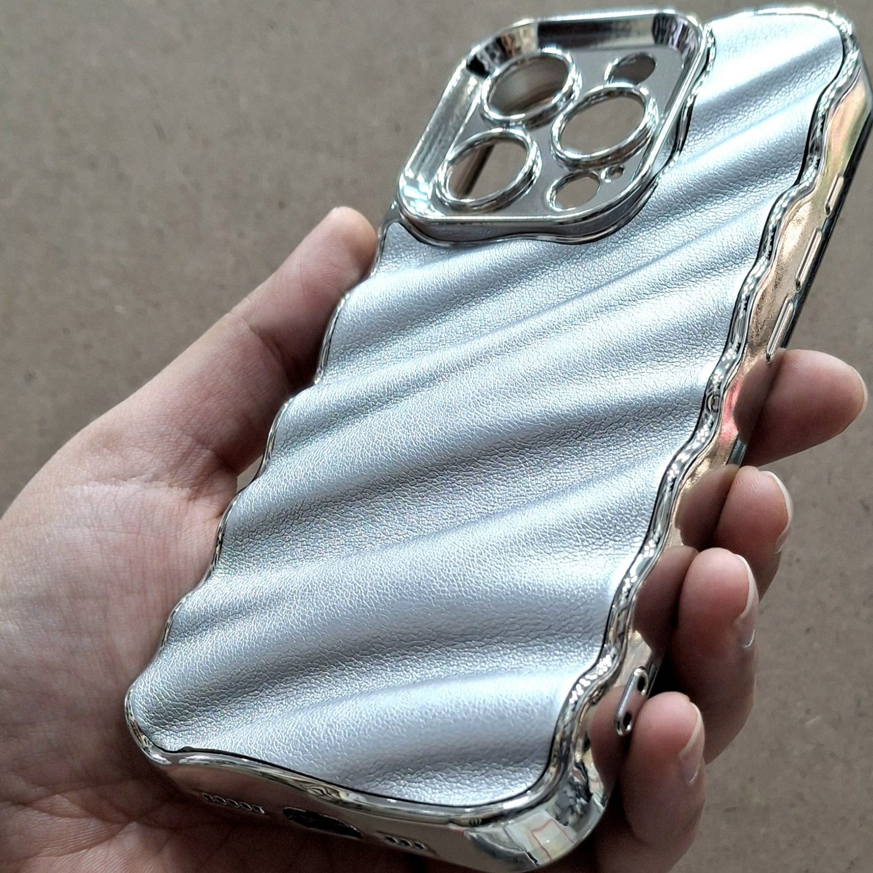 قاب چرمی موج دار نقره ای