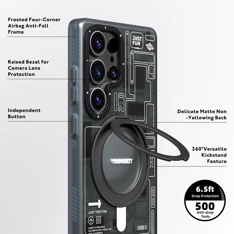 کاور یانگ کیت مدل Technology Rotating bracket مناسب برای گوشی موبایل سامسونگ Galaxy S25 Ultra رنگ خاکستری