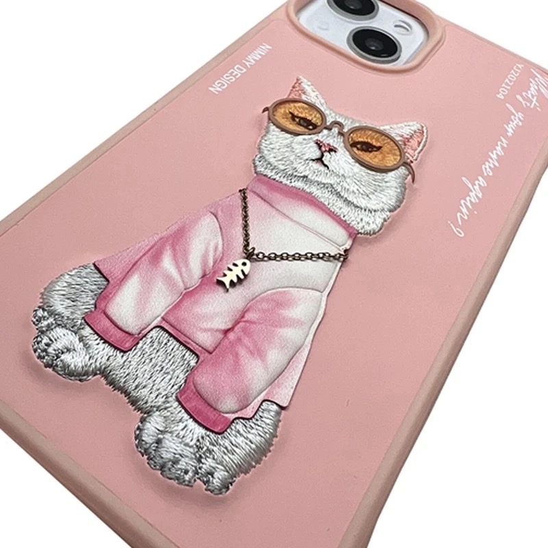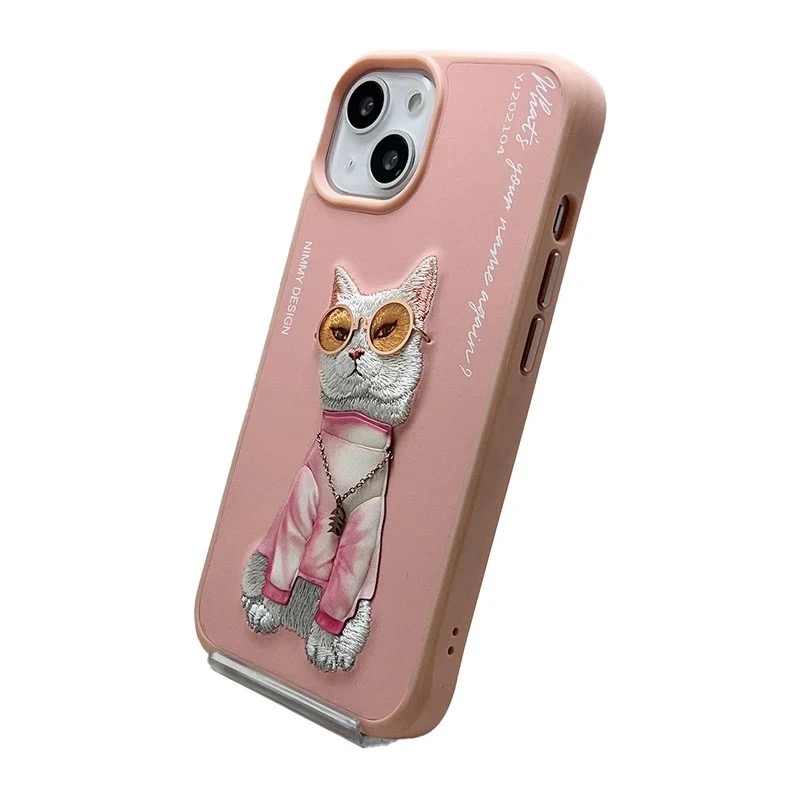 کاور NIMMY مدل گربه عینکی همراه با گردن بند مناسب برای Apple iPhone 1۵ Pro