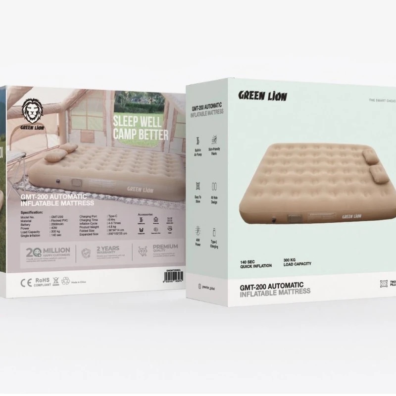 تشک بادی دو نفره گرین لاین مدل GMT-200 Automatic یکی از محصولات کاربردی و مدرن در دسته تجهیزات استراحت و کمپینگ به شمار میآید. این تشک بادی با بهرهگیری از فناوری باد شدن سریع تنها در مدت زمان 180 ثانیه آماده استفاده میشود. و همین ویژگی باعث شده است تا کاربران بدون صرف زمان طولانی برای آمادهسازی بتوانند به راحتی از آن استفاده کنند. ظرفیت تحمل وزن این تشک تا 300 کیلوگرم است که نشاندهنده استحکام بالا و کیفیت ساخت مناسب آن میباشد. بنابراین هم برای استفاده فردی و هم برای استفاده دو نفره انتخابی ایدهآل محسوب میشود.جنس بدنه این تشک از مواد مرغوب و بادوام ساخته شده است. که در برابر فشار و سوراخ شدن مقاومت خوبی دارد و طول عمر بالایی را تضمین میکند. طراحی سطح رویی تشک به گونهای است که با ایجاد موجهای متناوب مانع از سر خوردن و حرکت ناخواسته کاربر میشود و همزمان راحتی و نرمی بیشتری را فراهم میکند. یکی دیگر از ویژگیهای مهم این محصول همراه داشتن دو بالش بادی است.