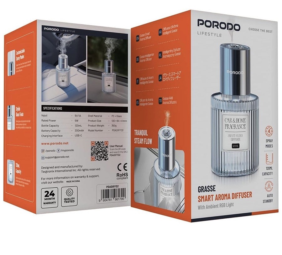 خوشبو کننده هوا هوشمند پرودو Porodo Grasse Smart Aroma Diffuser PDADIFFD2